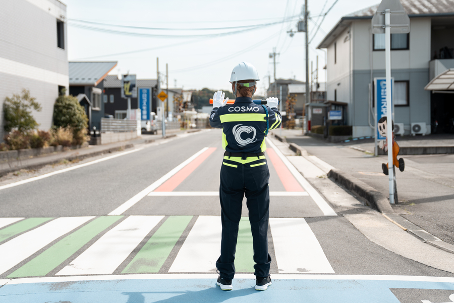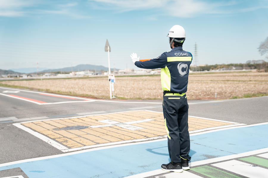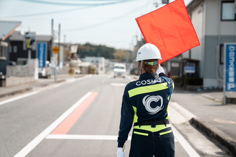 歩行者、車両を安全に誘導できるようコスモ警備では安全確認に余念がなく、事前の準備や、警備時の作業確認を怠りません。