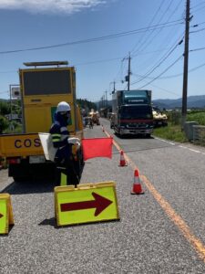 滋賀県彦根市と長浜市にて舗装工事に伴いまして交通誘導警備業務のご依頼を賜っております。
