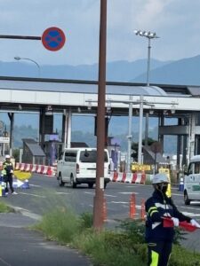 警備スタッフの皆様熱い中大変長い規制範囲になりますが熱中症などないよう引き続きよろしくお願いいたします。